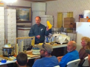 Beeswax demonstration October 16, 2015March 15, 2022 Worker BeeUncategorized The October meeting was held at the Schnitzler home. Club member Andy Schnitzler demonstrates how he melts beeswax from his hive for making candles and molds. Good skills for beekeepers to have!