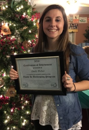 Emily Weber of Helenville earned her achievement certificate as she successfully completed a year in the club’s Youth in Beekeeping program. She recounted her learning experiences with honey bee swarms, stings, and hive management. Anton Bednarski of Watertown also completed the youth beekeeping program.