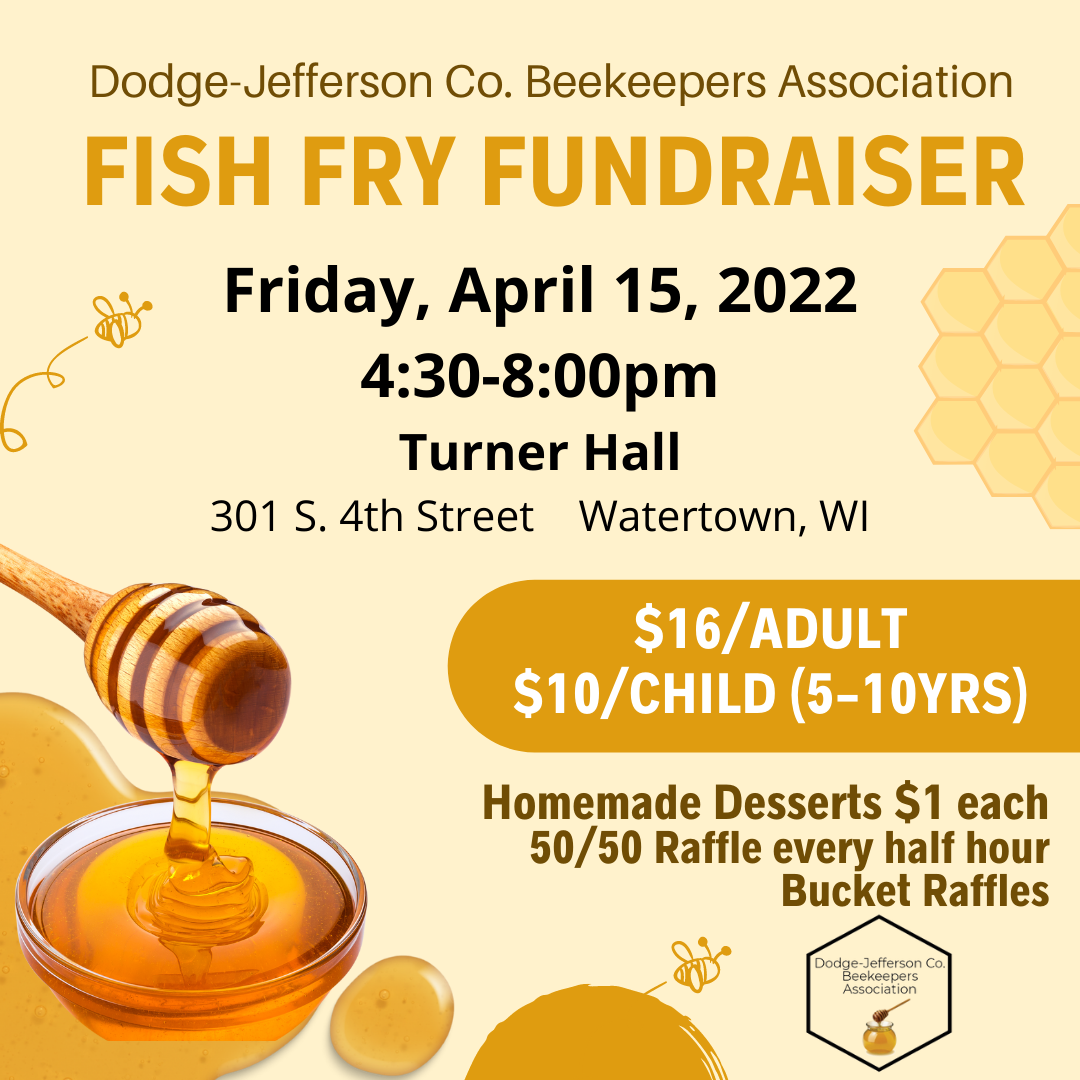 Mark your calendar! All you can eat fish and chicken will both be served, along with the usual trimmings and homemade desserts. Prices are $16 for adults, $10 for kids. Honey will be available to purchase, and there will be fun raffles.